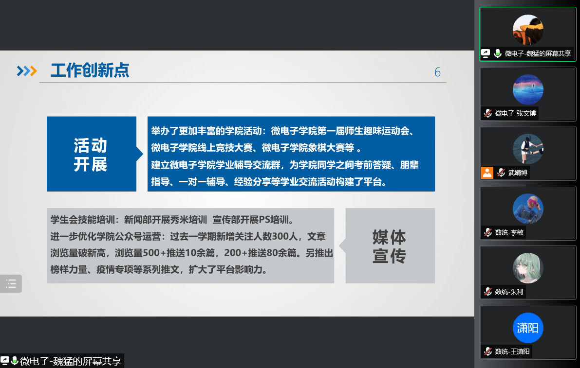 挖掘并发展了一系列工作创新点,例如丰富的学院活动、学业交流平台及权益反馈平台的搭建、学生会成员的技能培训等。魏猛先后阐述了威尼斯人澳门