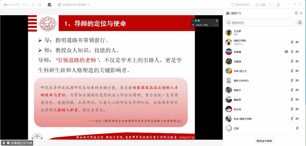组织召开2025年导师培训会。会议采用线上线下相结合的方式进行,邀请西安电子科技大学威尼斯人澳门