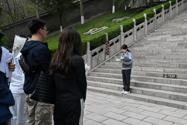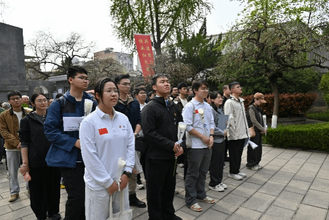 在集体献花仪式上,全体师生于杨虎城将军墓碑前肃立默哀一分钟,怀着无比崇敬的心情向革命先烈深深鞠躬,随后依次缓步敬献鲜花,寄托对革命先烈的无尽追思与崇高敬意。